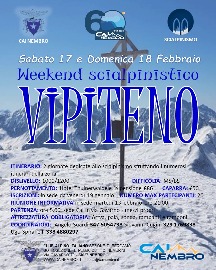Attrezzatura obbligatoria : Artva , pala , sondo , rampanti e ramponi