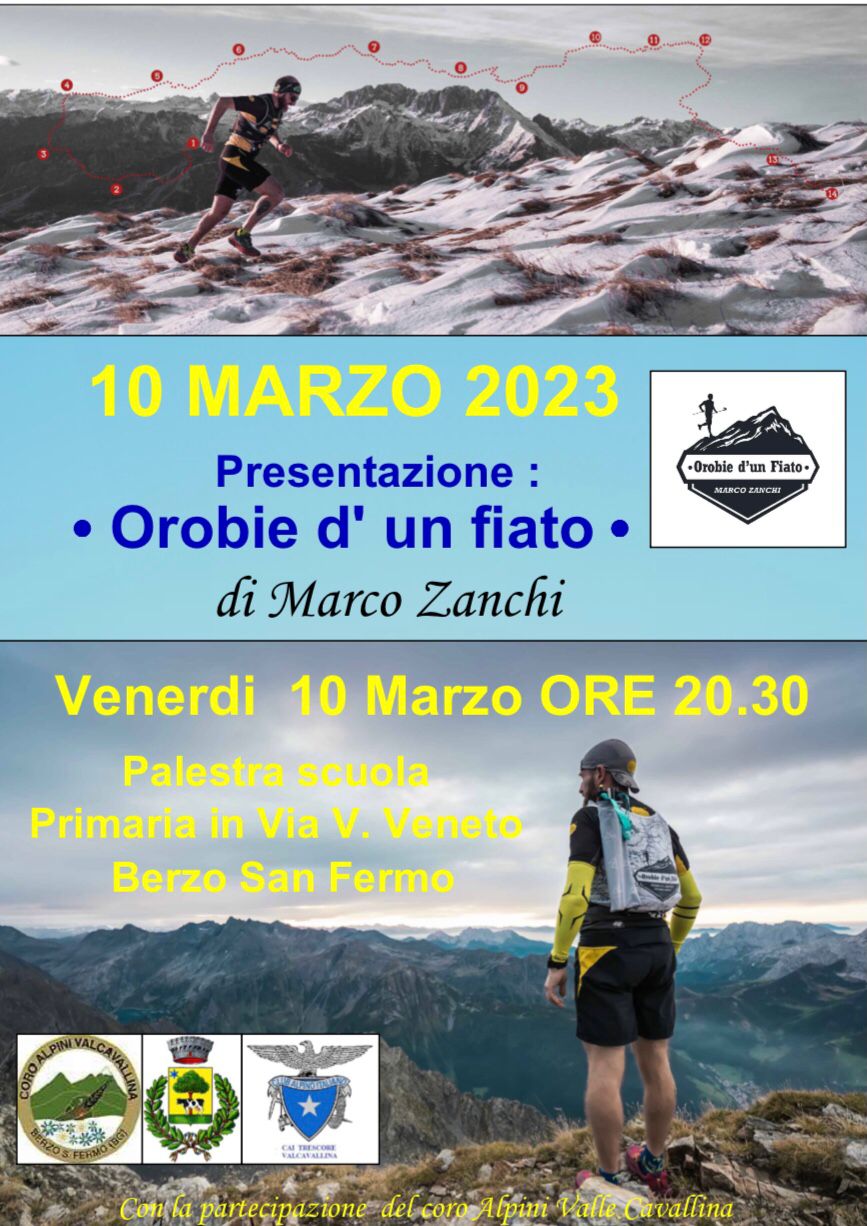 Presentazione del Filmato di Marco Zanchi sul percorso delle nostre Orobie. La serata si svolge presso la Palestra Scuola Primaria, in via V. Veneto Berzo S. Fermo.